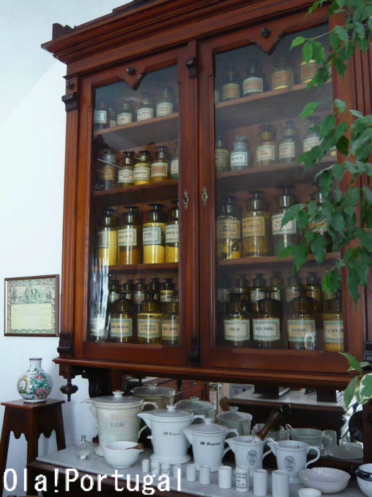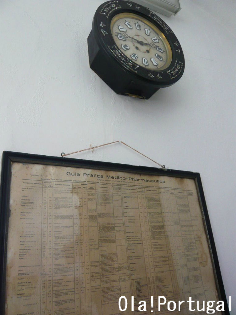 入り口を入って直ぐの場所は今営業している薬局です。右手奥の部屋が、昔の薬局の瓶だとか道具をディスプレイした部屋なのですが、まずは薬を入手しなければ。薬は副作用が怖いのでここは慎重に。「Estou constipado 風邪をひいた」、「Arrepio 悪寒」、「Tosse せき」を伝えると薬局のお姉さんは、鼻を指します。これは鼻水が出るのか?と言う事でしょう。「Nao」。えっ?ポルトガル語? いえいえ、持って来ていた「旅の指さし会話帳」が初めて役に立った。薬局のお姉さんは奥から風邪薬と咳の薬を持って来てくれました。毎食後(8時間毎)に、それぞれ1錠飲むとの事。