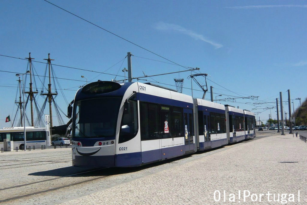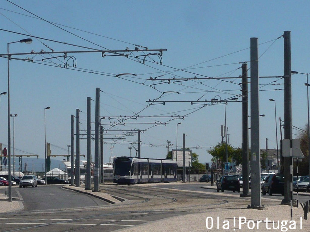 カシーリャスを走る路面電車は、リスボン市電15番線の新型車両に似た低床型のライトレール。2008年開通の新しい路面電車です。