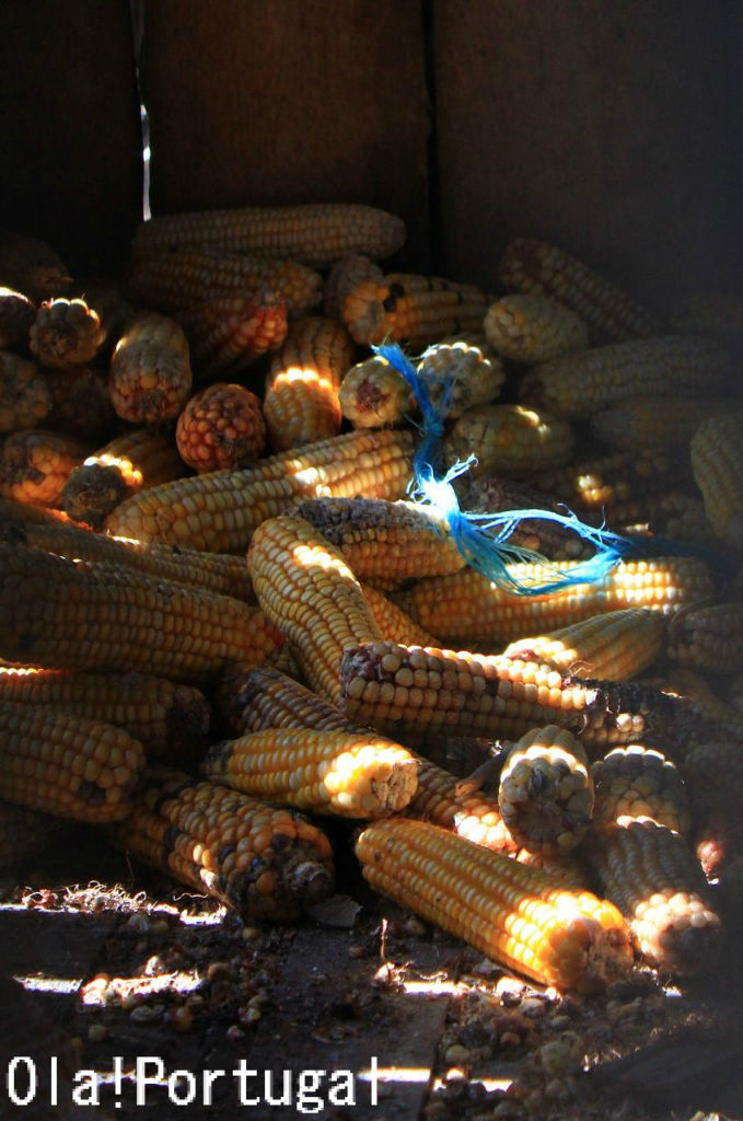 エスピゲイロの中をのぞくと、トウモロコシが無造作に放り込んでありました。ポルトガルの北部ではトウモロコシの粉から作られた、ブロアと呼ばれる外側が固く、中が少しねっとりとした、黒色のパンがよく食べられています。