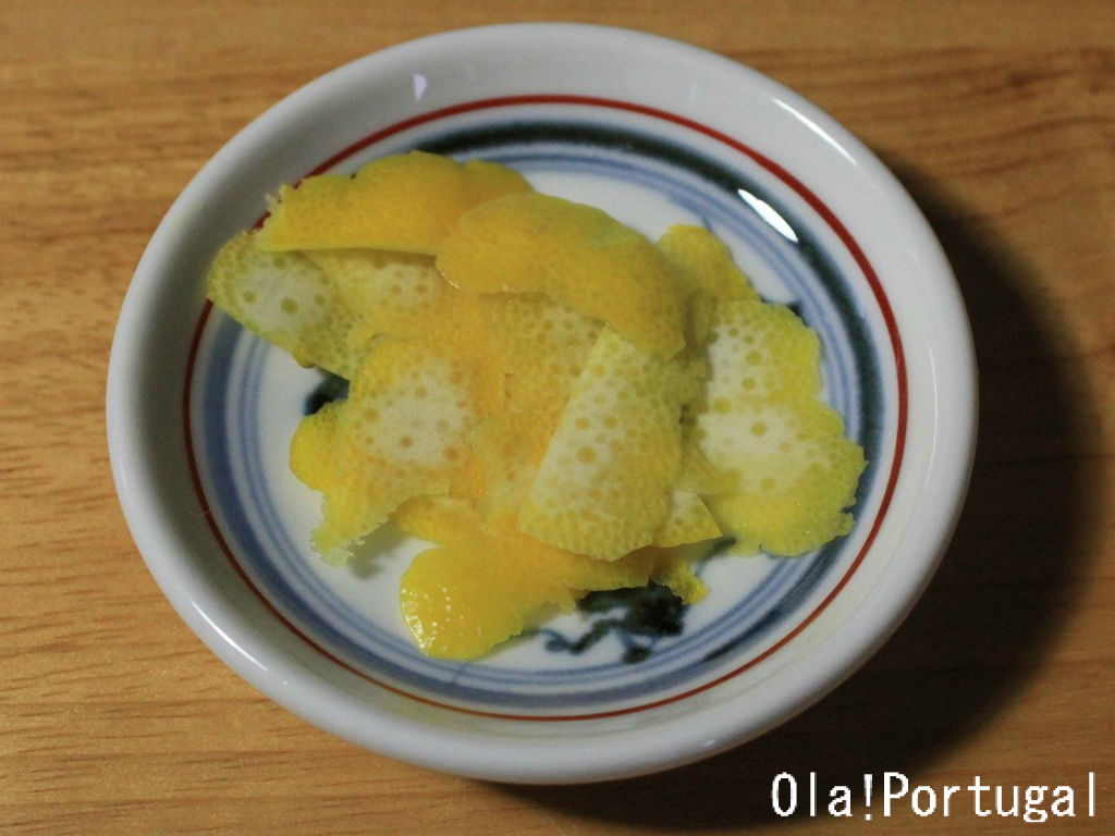 レモンの皮をむきました。白い部分は苦味があるらしく、なるべく入らないように。