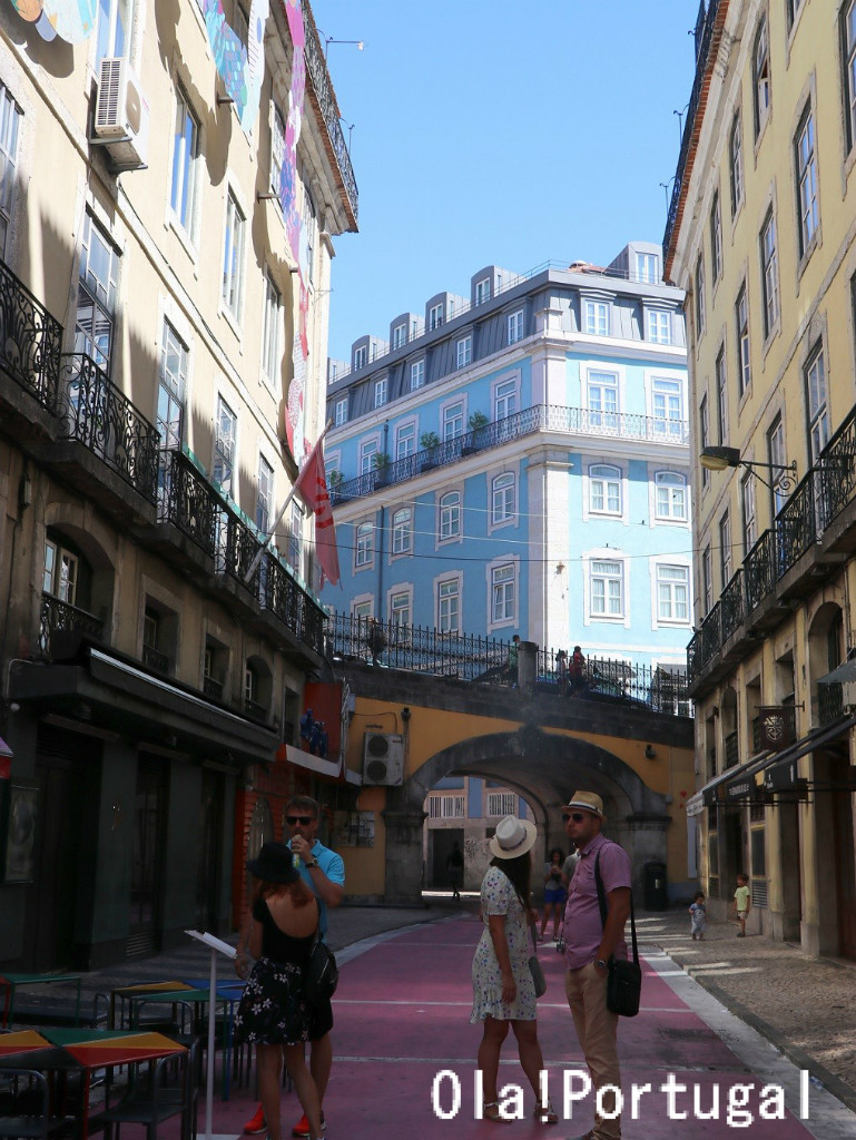 缶詰レストランは、カイス・ド・ソドレの駅から、カモンイス広場に登って行く道(上の写真で言うと前方の斜めに登っていく道)の眼下、交差した下の道・ピンクロードにあります。