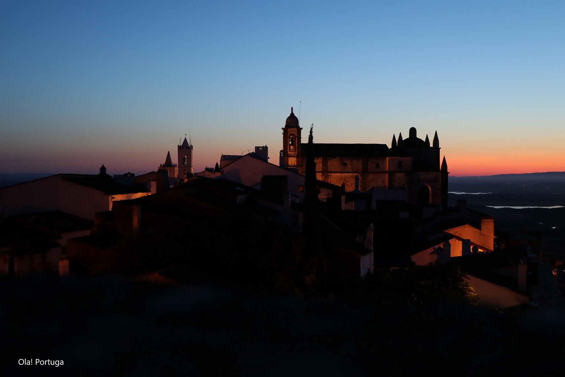 夜明け直前のモンサラーシュ城からのモンサラーシュ村の眺め。夜景を眺めてから、ずっと居た訳ではなく、がんばって早起きしました